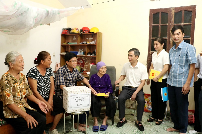 Ông Trần Minh Hoan, Uỷ viên BCH Đảng bộ tỉnh, Bí thư Đảng ủy, Chủ tịch HĐND xã; ông Phạm Thành Lợi, Phó Bí thư Đảng ủy, Chủ tịch UBND xã cùng các lãnh đạo trong đoàn đã đến thăm và tặng quà cụ Trần Thị Lựu, 103 tuổi ở thôn Tiên Hương 4; cụ Phạm Thị Tiệm, 100 tuổi ở thôn Phú Thứ.