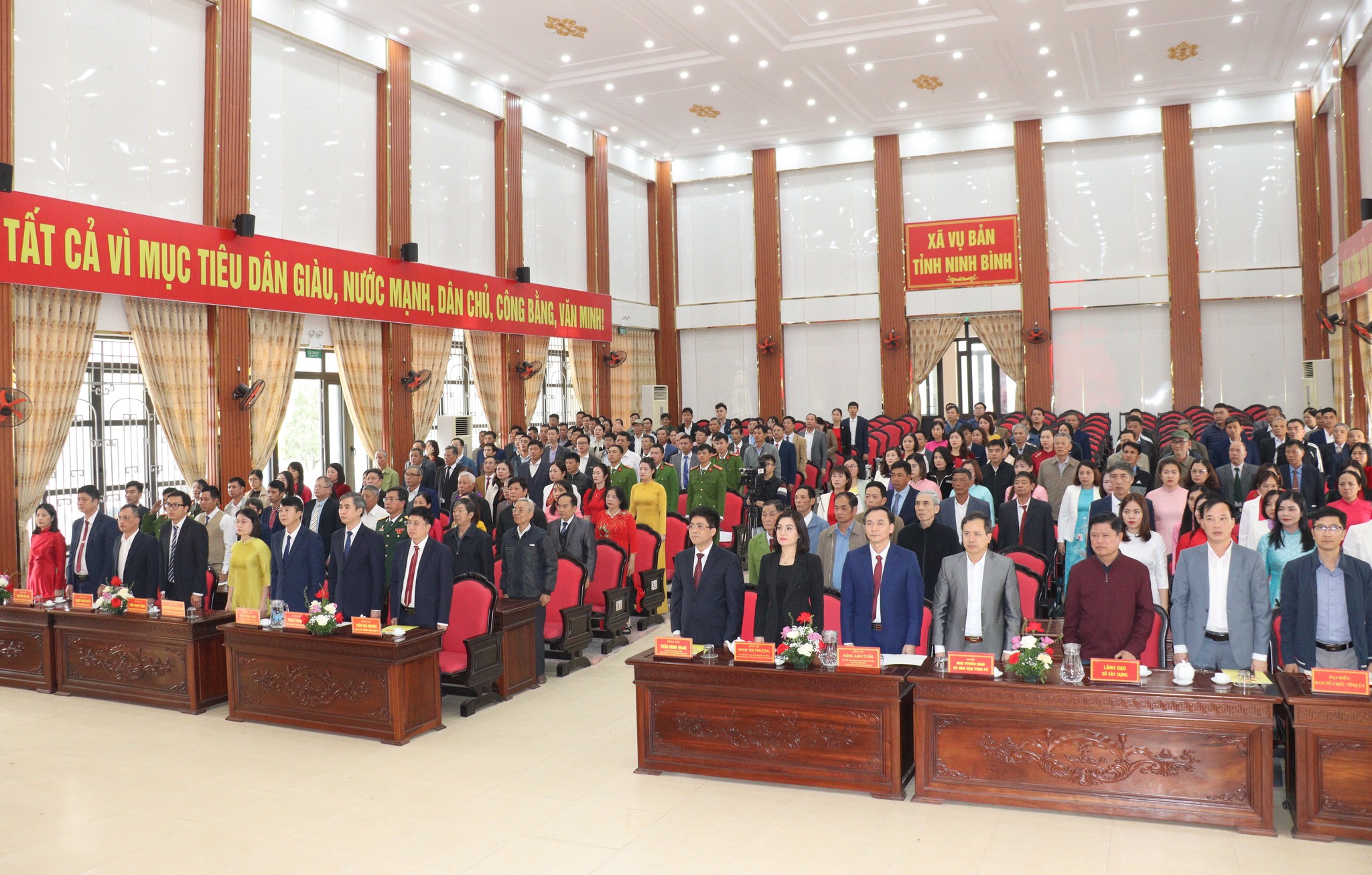 Về phía xã Vụ Bản có đồng chí Trần Minh Hoan, Tỉnh ủy viên, Bí thư Đảng ủy, Chủ tịch HĐND xã; đồng chí Trần Văn Nghinh, Phó Bí thư Thường trực Đảng ủy; đồng chí Phạm Thành Lợi, Phó Bí thư Đảng ủy, Chủ tịch UBND xã; các đồng chí Thường trực HĐND, lãnh đạo UBND, các đồng chí trong BCH Đảng bộ xã, Lãnh đạo và cán bộ, công chức của UB MTTQ Việt Nam xã, các cơ quan tham mưu giúp việc Đảng ủy, Trung tâm Chính trị xã, các phòng, ban, cơ quan chuyên môn thuộc HĐND, UBND xã; Chi ủy các chi bộ; Trưởng thôn; Đảng viên nhận huy hiệu Đảng đợt IV năm 2025; Đảng viên hoàn thành xuất sắc nhiệm vụ tiêu biểu năm 2025.