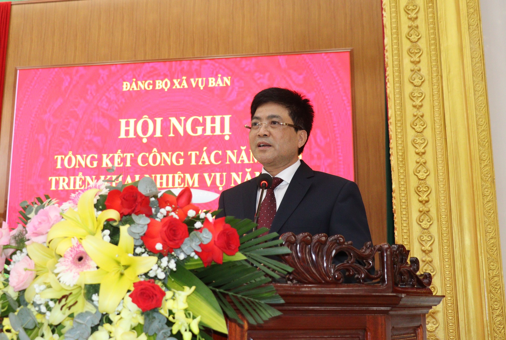 Đồng chí Trần Minh Hoan, Tỉnh ủy viên, Bí thư Đảng ủy, Chủ tịch HĐND xã Vụ Bản phát biểu chỉ đạo tại hội nghị