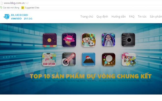 | Giao diện trang chủ cuộc thi Bluebird Award 2016 đã công bố 10 sản phẩm lọt vào chung kết. (Ảnh: Vietnam+) |