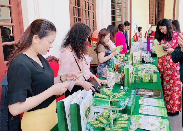 | Các đại biểu tham quan gian hàng giới thiệu sản phẩm thương hiệu của các Doanh nghiệp Thủ đô. |