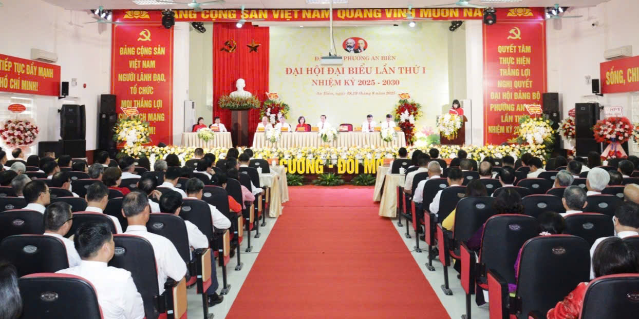 Đại hội Đảng bộ phường lần thứ nhất, nhiệm kỳ 2025 - 2030 với chủ đề “nâng cao năng lực lãnh đạo, sức chiến đấu của Đảng bộ; xây dựng chính quyền phục vụ và thân thiện; phát huy sức mạnh khối đại đoàn kết toàn dân; đẩy mạnh chuyển đổi số, ứng dụng khoa học công nghệ; sử dụng có hiệu quả các nguồn lực, phát triển kinh tế - xã hội, xây dựng phường An Biên trở thành đô thị văn minh, hiện đại.
