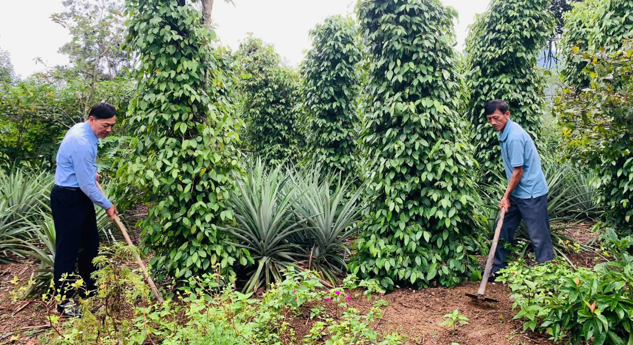 Ông Đinh Xuân Chài cho biết: “Sau khi đăng ký xây dựng vườn mẫu, bản thân tôi chia mãnh vườn thành từng khoảnh để trồng các loại cây ăn qủa giống tốt, phù hợp thỗ nhưỡng đất như tiêu, dứa, thanh long… Toàn bộ khu vườn mẫu được đầu tư lắp đặt hệ thống tưới nước dẫn nước đến tận từng gốc cây. Nhờ vậy mà việc chăm sóc cây thuận tiện và đạt hiệu quả cao hơn. Hình thành vườn mẫu, tôi đã sửa lại nhà cửa, cải tạo lại cây trồng. Hiện nay, khu vườn xanh đẹp, thu hút khách du lịch đến tham quan, mang lại hiệu quả kinh tế cho gia đình. Vườn mẫu vừa đẹp, vừa tạo được cảnh quan môi trường sạch”, ông Đinh Xuân Chài hồ hởi giới thiệu..