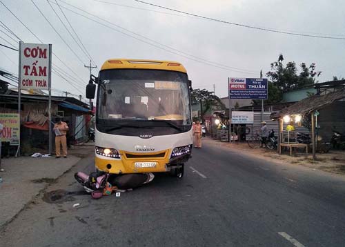Chiếc xe khách được cho là lấn trái đã tông trực diện vào xe máy khiến 1 người phụ nữ chết vào ngày 30 Tết.
