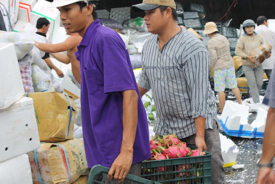 Chùm ảnh Hàng trăm người dân dầm mưa giúp tài xế gom hàng trái cây