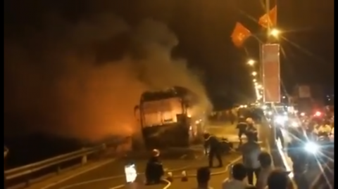 Tại hiện trường, chiếc xe khách giường nằm hai tầng bị thiêu rụi toàn bộ, giao thông trên tuyến bị ách tắc cục bộ. Hiện cơ quan chức năng đang tiếp tục điều tra làm rõ nguyên nhân vụ cháy.