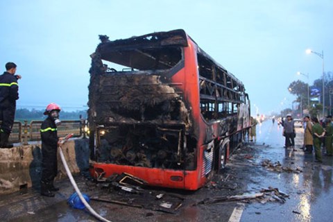 Ông Nguyễn Hải Dương (SN 1957) người chứng kiến vụ tai nạn cho biết: “Vào thời điểm đó, chúng tôi nghe thấy một tiếng nổ rất lớn. Mọi người chạy ra xem thì thấy khói bốc lên rồi lửa bén ra bao trùm lấy chiếc xe. Rất may hành khách và người nhà xe không ai bị thương cả”.
