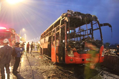 Chiếc xe khách bốc cháy dữ dội trên quốc lộ