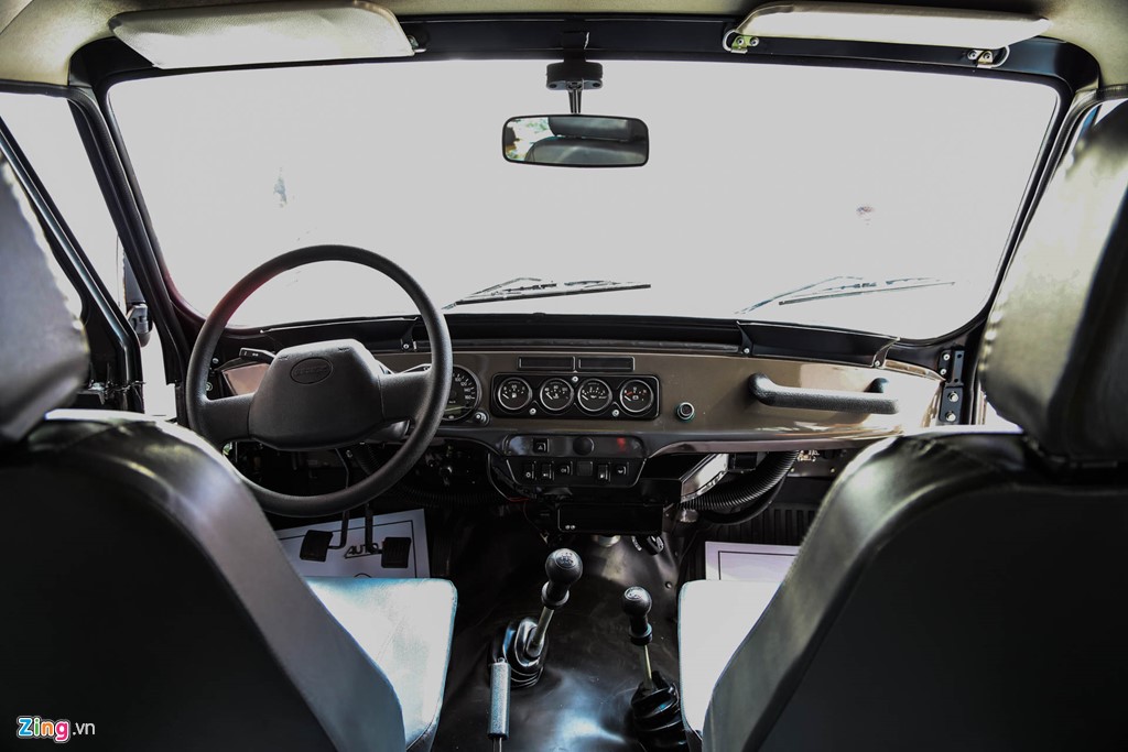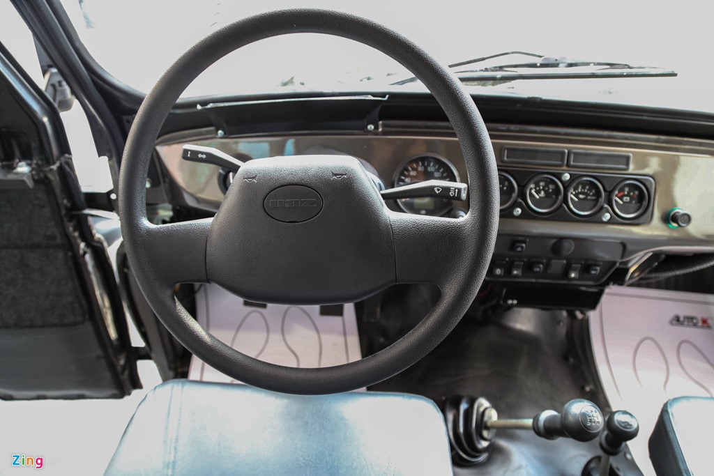 Nội thất UAZ Hunter được tối giản tới mức không còn gì để lột bỏ thêm. Những chi tiết cơ khí không thay đổi so với xe thập niên 60. Xe không có túi khí, chỉ có đai an toàn cho hàng ghế trước.