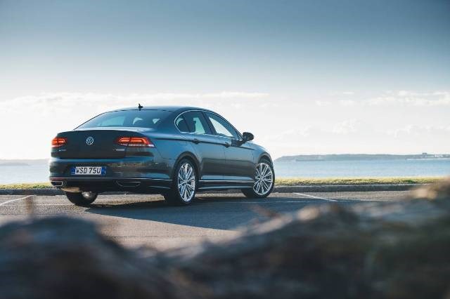 Đặc điểm ngoại hình nổi bật của The New Passat là thân xecó các đường gân đầy góc cạnh tôn lên vẻ thể thao rắn rõi. Mui xe dáng thoải dần kéo dài từ cột chữ A qua cột C và vuốt ra đuôi xe tạo nên cảm giác mạnh mẽ.So với phiên bản cũ, The New Passat có khoảng cách gầm thấp hơn 14mm. Khoảng cách gầm thấp đã góp phần không nhỏ trong việc tô điểm thêm vẻ thể thao của xe.