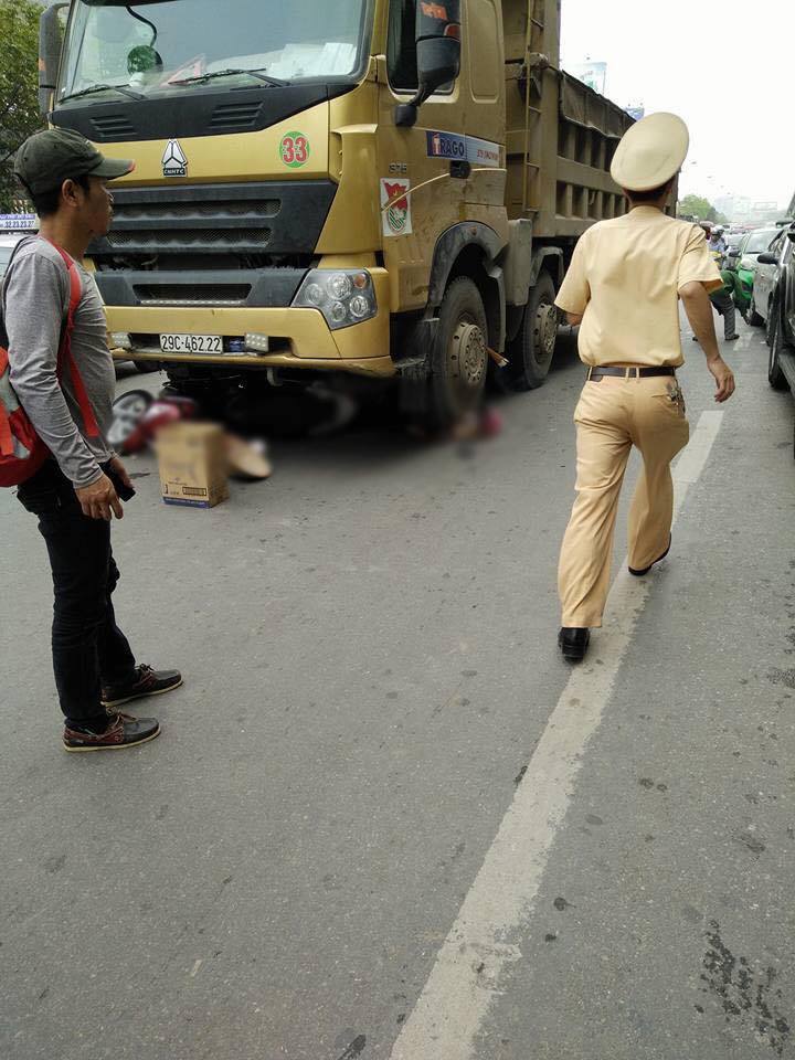 Trong quá trình đứng chờ, người phụ nữ này đã điều khiển xe máy lấn sang trước đầu xe tải BKS 29C-46.222 Hậu quả, xe tải đã cuốn người phụ nữ và xe máy vào gầm khiến nạn nhân tử vong tại chỗ.