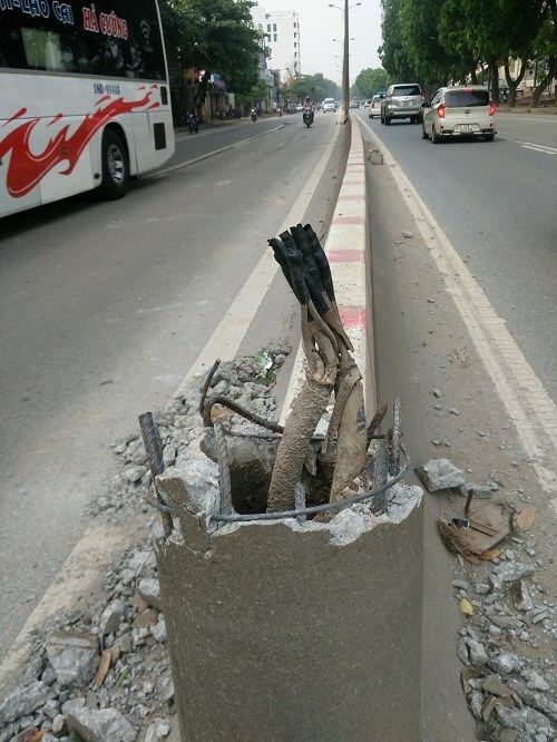 | Lõi cây cột được làm từ những thanh thép khá nhỏ nên chỉ một va chạm nhẹ cũng dễ dàng khiến cột “đổ gục” |