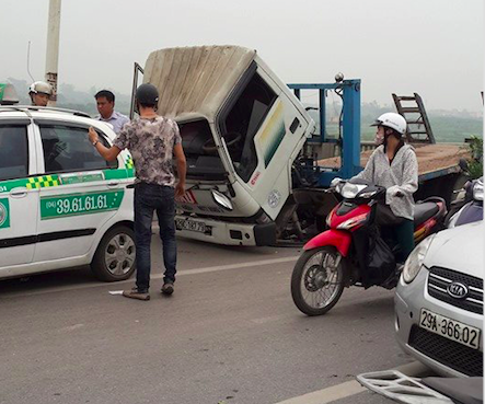 | Phần đầu xe tải bị hư hỏng nặng (Nguồn: otofun) |