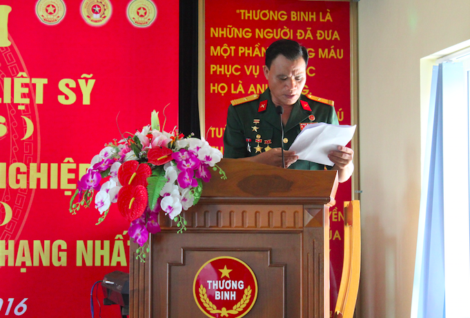 | Thiếu tướng Trần Vinh Quang - nguyên Thứ trưởng Bộ Lao động, Thương binh và Xã hội, Chủ tịch Hiệp hội Doanh nghiệp của Thương binh và NKT Việt Nam thừa uỷ quyền của Bộ trưởng Bộ LĐ,TB&XH lên trao tặng Bằng khen cho các tập thể và cá nhân có thành tích xuất sắc trong lao động và sản xuất |