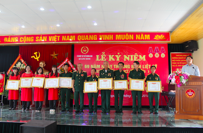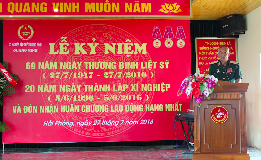 Nhân dịp Kỷ niệm trọng thể 69 năm ngày Thương binh Liệt sĩ (27/7/1947- 27/7/2016) Xí nghiệp tập thể thương binh Quang Minh - Hải Phòng đã long trọng tổ chức Lễ kỷ niệm nhằm mục đích ôn lại truyền thống của ngày Thương binh Liệt sĩ, mốc son quan trọng để Đảng, Nhà nước và nhân dân ta ghi nhớ, tôn vinh các anh hùng liệt sĩ, các đồng chí, thương bệnh binh và những người có công với nước.