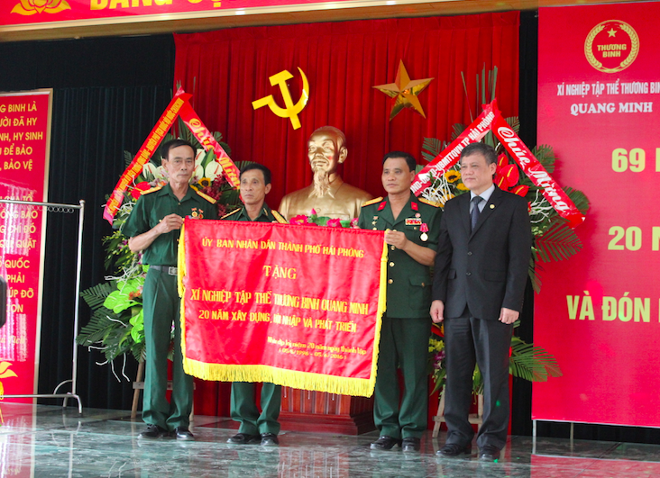 HOANHAP.VN - Sáng ngày 27/7, Xí nghiệp tập thể thương binh Quang Minh - Hải Phòng đã tổ chức Lễ kỷ niệm 69 năm ngày Thương binh Liệt sĩ và Lễ kỷ niệm 20 năm ngày thành lập Xí nghiệp. Đồng thời vinh dự đón nhận Huân chương Lao động hạng Nhất, phần thưởng cao quý của Nhà nước trao tặng cho Xí nghiệp và cá nhân đồng chí Trần Hồng Quảng - Tổng Giám đốc Xí nghiệp, thương binh 1/4, Anh hùng lao động thời kì đổi mới.