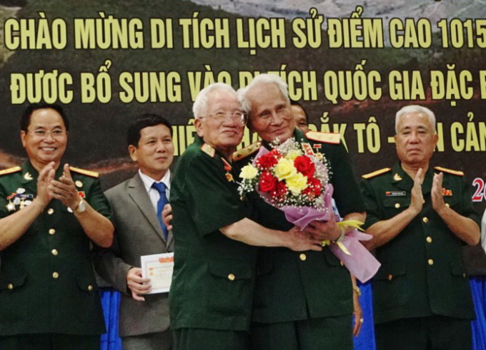 Và hai hôm nay chúng tôi về dự lễ kỷ niệm và đón nhận danh hiệu Di tích lịch sử cấp quốc gia đặc biệt của 2 cao điểm 1049 và 1015, chúng tôi lại cảm thấy rằng sự đặc biệt quan tâm của Đảng bộ, chính quyền, nhân dân địa phương là không thể kể hết được tất cả. Công trình được công nhận hôm nay, tới đây đồng chí Bộ trưởng Bộ Văn hóa Thể thao và Du lịch sẽ thay mặt Chính phủ trao tặng Bằng xếp hạng Di tích quốc gia đặc biệt là có công lao của các đồng chí lãnh đạo và hơn 85 chiến sĩ từng chiến đấu ở nơi đây mang đá, xi măng, sắt thép, bia từ ngoài Bắc đi vào xây dựng 2 công trình đó.
