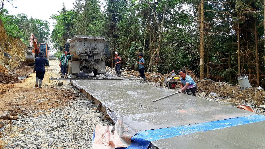 Tuyến đường từ thị trấn Cốc Pài lên Thảo Nguyên Suôi Thầu đang được nhà thầu tích cực thi công.