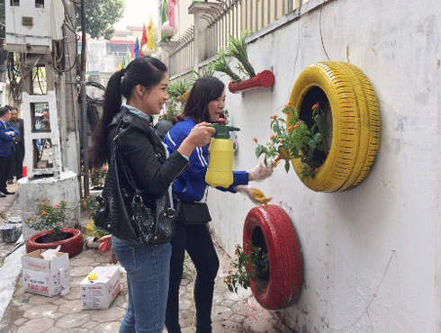 Chỉ từ những vật liệu tái chế như lốp xe cũ, chai lọ, ống nhựa, các đoàn viên thanh niên đã biến chúng thành những chậu trồng hoa, cây cảnh đẹp mắt. Thích thú với vườn hoa đặc biệt này, chị Nguyễn Phương Thanh (Mai Dịch, Cầu Giấy, Hà Nội) cho hay, trước đây mỗi lần đi qua phố Trần Bình (Mai Dịch, Cầu Giấy), rác bốc mùi hôi thối, thì nay cảnh đó đã không còn nữa, thay vào đó là màu xanh của cây, hoa. Nhìn vườn hoa xanh mát, người dân tự có ý thức hơn. Nhiều khi theo thói quen, có người xách túi rác ra định đổ nhưng thấy vườn hoa đẹp quá nên lại mang về.