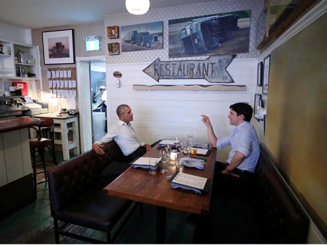 Ông Obama và ông Trudeau sau đó đã đăng lên Twitter của mình rằng họ đã thảo luận về các cách để giúp các nhà lãnh đạo trẻ tham gia vào công việc ở cộng đồng của họ, đồng thời đăng một vài bức ảnh chụp họ ngồi trong nhà hàng.