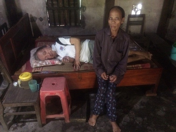 | Bà Hồng bên người chồng bị liệt nửa người phải nằm một chỗ |