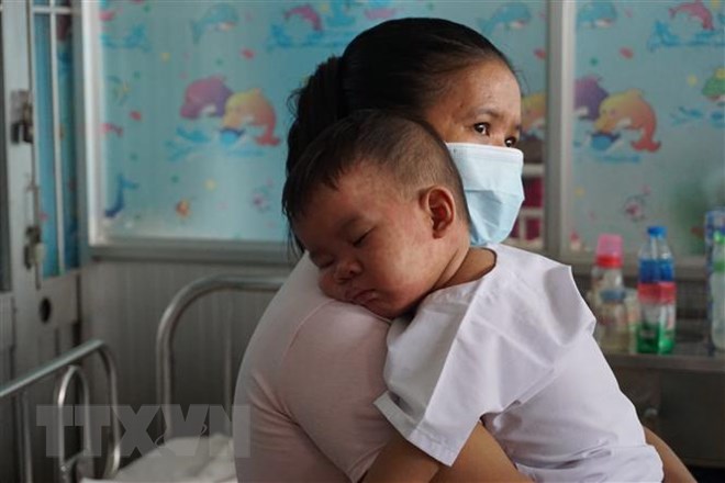 | Bệnh nhi mắc bệnh sởi đang điều trị tại Bệnh viện Bệnh Nhiệt đới Thành phố Hồ Chí Minh. (Ảnh: Đinh Hằng/TTXVN) |