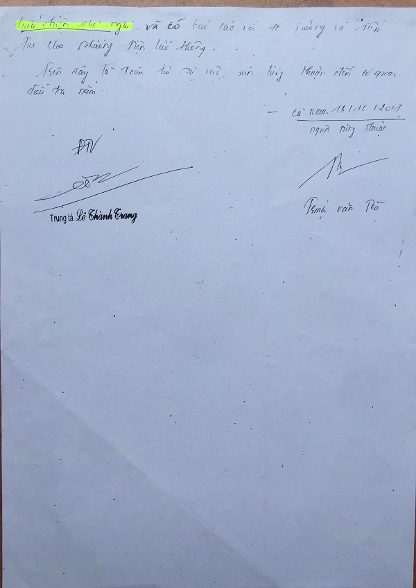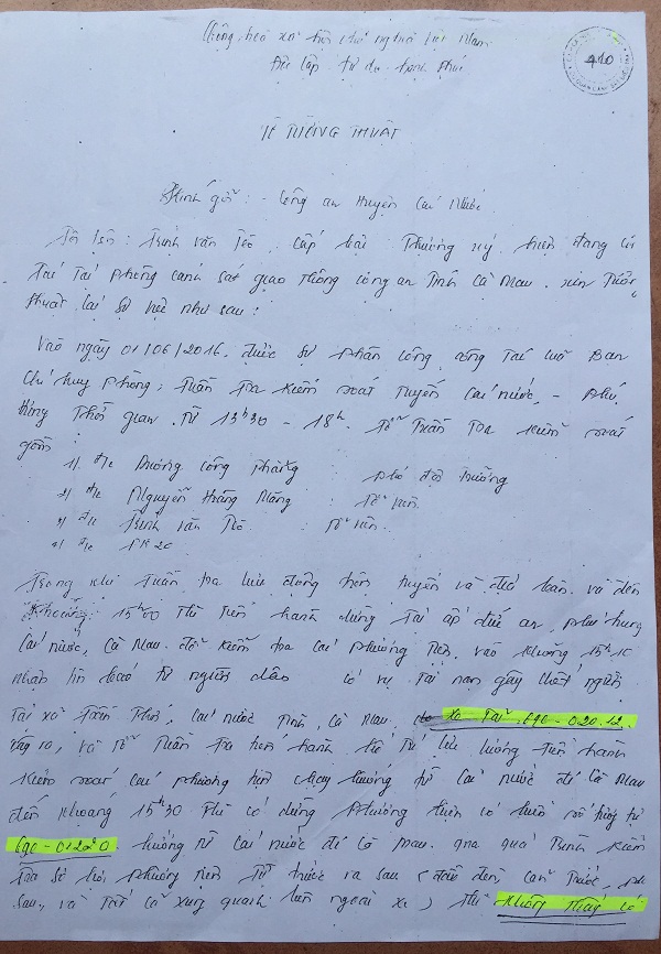 | Tờ Tường thuật của CSGT. |