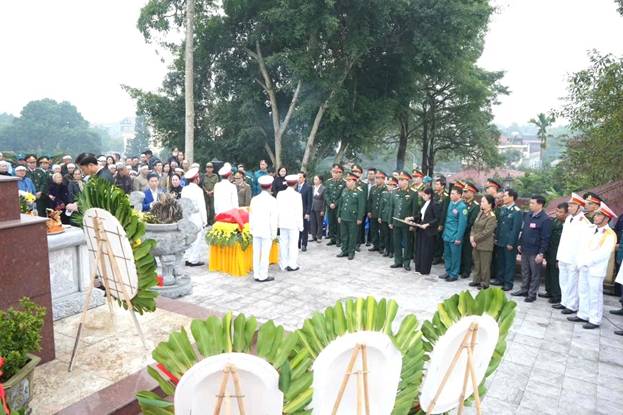 Các cơ quan đoàn thể, lực lượng vũ trang và bà con nhân dân đến thắp hương tri ân và tiễn đưa liệt sĩ về nơi an nghỉ.