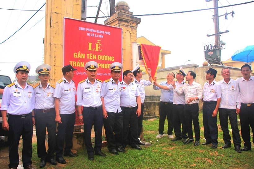 Chính quyền thị xã Ba Đồn và Ban Liên lạc cựu binh Gạc Ma tổ chức gắn tên đường mang tên anh hùng liệt sĩ Gạc Ma Trần Văn Phương