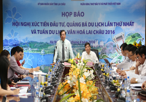 HOANHAP.VN - Ngày 15/4/2016, tại Hà Nội, UBND tỉnh Lai Châu phối hợp với Ngân hàng Thương mại cổ phần Đầu tư và phát triển Việt Nam (BIDV) tổ chức cuộc họp báo giới thiệu về Hội nghị Xúc tiến Đầu tư và Quảng bá Du lịch tỉnh Lai Châu lần thứ nhất và Tuần Du lịch - Văn hóa tỉnh Lai Châu năm 2016