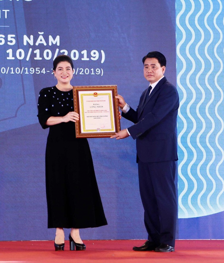 | Chủ tịch UBND TP Hà Nội Nguyễn Đức Chung trao Bằng công nhận công trình Nhà máy nước mặt Sông Đuống là công trình chào mừng 65 năm Ngày giải phóng Thủ đô |