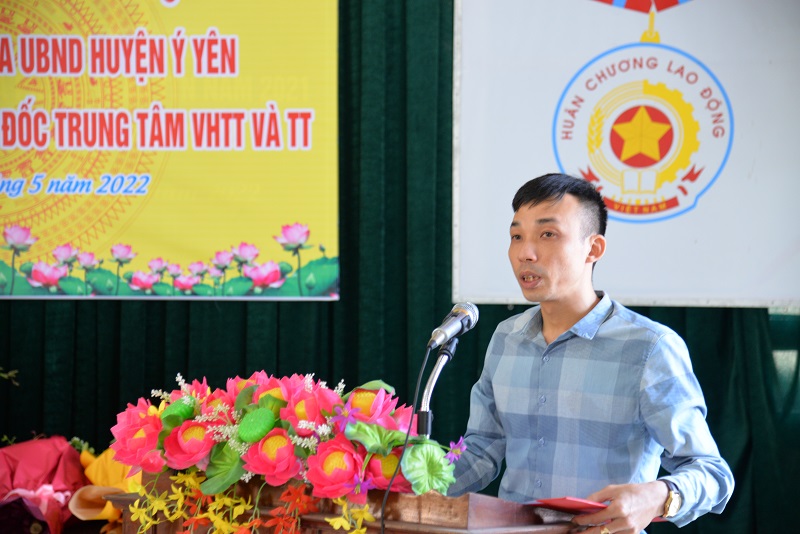 Ông Nguyễn Tuấn Song, Phó Bí thư Huyện uỷ, Chủ tịch UBND huyện trao quyết định điều động và bổ nhiệm ông Trịnh Hải Hà giữ chức vụ Giám đốc Trung tâm VH-TT&TT huyện Ý Yên