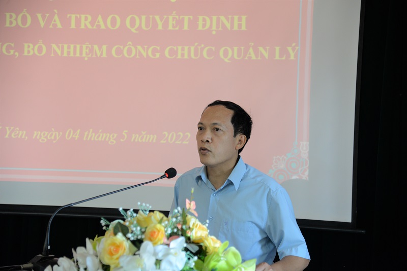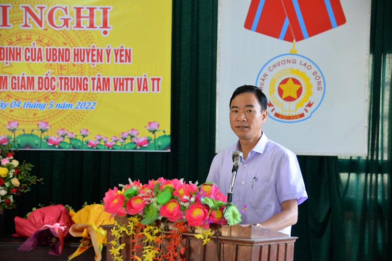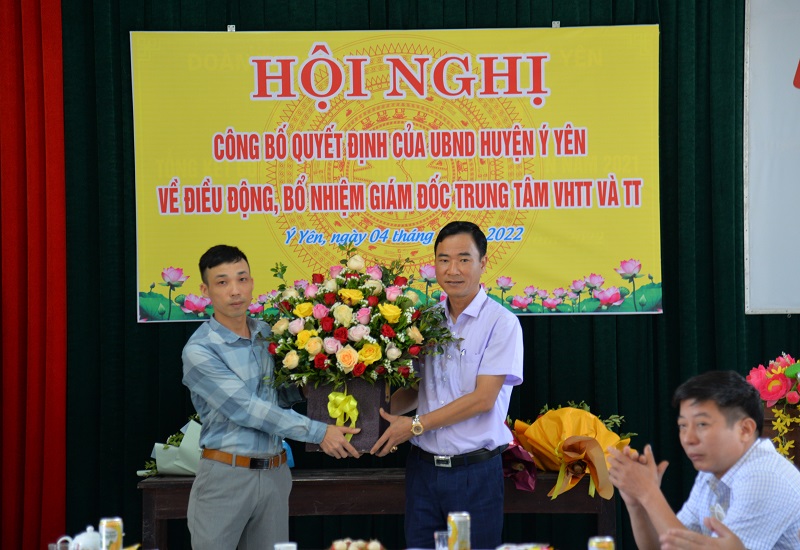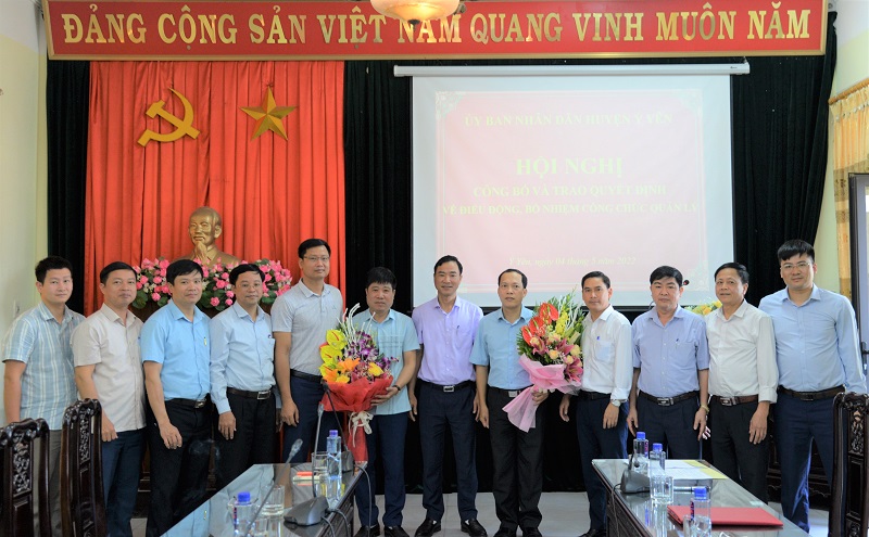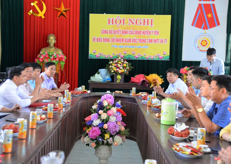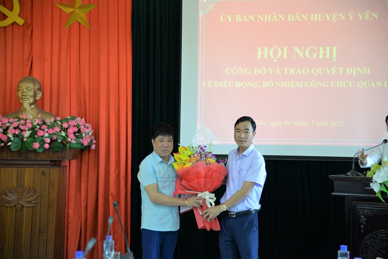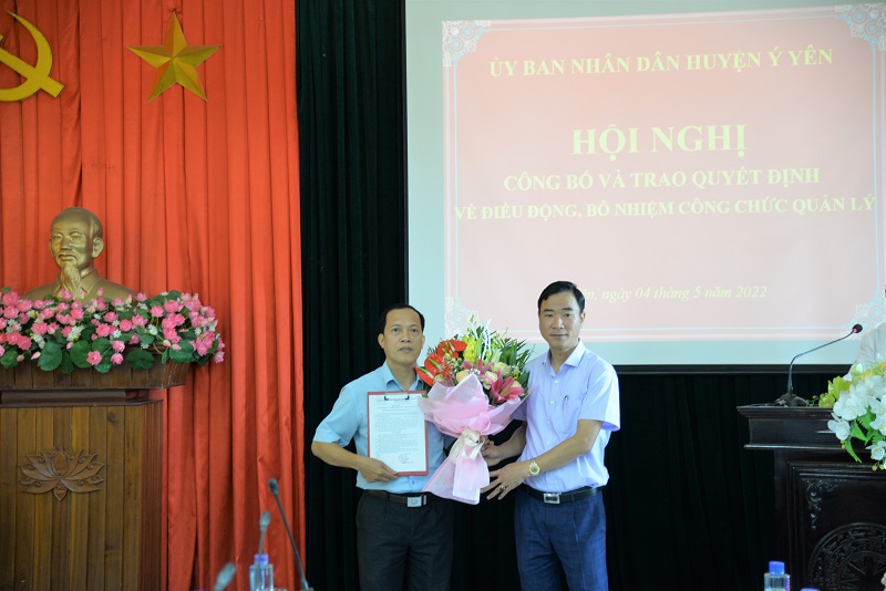Tại hội nghị, ông Vũ Hoàng Hiệp, HUV, Trưởng phòng Nội vụ huyện đã công bố các Quyết định của Chủ tịch UBND huyện về công tác cán bộ gồm: Quyết định số 2315/QĐ-UBND về việc điều động và bổ nhiệm ông Phạm Quang Dũng – Phó Chánh thanh tra huyện giữ chức vụ Phó Trưởng phòng Nội vụ huyện Ý Yên; Quyết định số 2316/QĐ-UBND về việc điều động và bổ nhiệm ông Hoàng Văn Hạnh – Phó Trưởng phòng Lao động – TB&XH huyện giữ chức vụ Phó Trưởng phòng Kinh tế - Hạ tầng huyện Ý Yên; Quyết định số 2318/QĐ-UBND về việc điều động và bổ nhiệm ông Trịnh Hải Hà – Phó Trưởng phòng Văn hóa – Thông tin giữ chức vụ Giám đốc Trung tâm Văn hóa – Thông tin & Thể thao huyện Ý Yên. Thời gian bổ nhiệm các chức vụ là 5 năm kể từ ngày 01/5/2022.