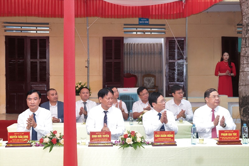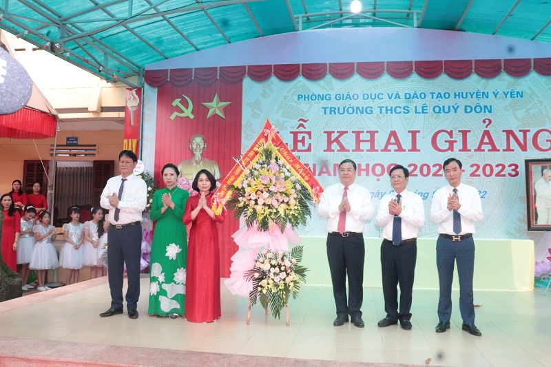 Lãnh đạo của các sở, ban ngành trên địa bàn tỉnh Nam Định và huyện Ý Yên đến dự buổi lễ khai giảng năm học 2022 - 2023 và tặng hoa chúc mừng nhà trường.