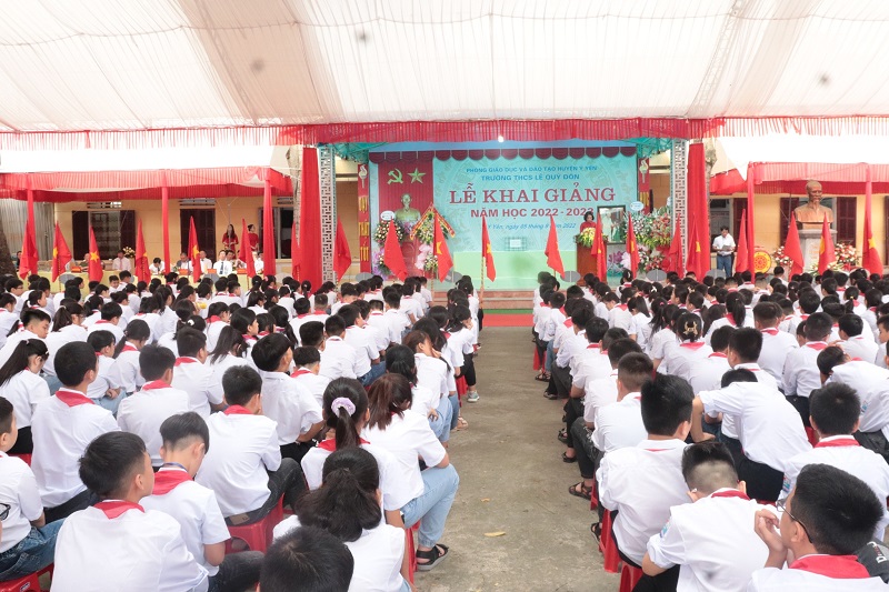 Toàn cảnh buổi lễ khai giảng tại trường THCS Lê Quý Đôn.