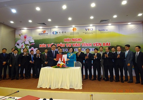 HOANHAP.VN - Ngày 15/4, tại Hà Nội, UBND tỉnh Yên Bái phối hợp với Phòng Thương mại và Công nghiệp Việt Nam (VCCI), Phòng Thương mại và Công nghiệp Hàn Quốc (KCCI) đã tổ chức Hội nghị xúc tiến đầu tư vào tỉnh Yên Bái.
