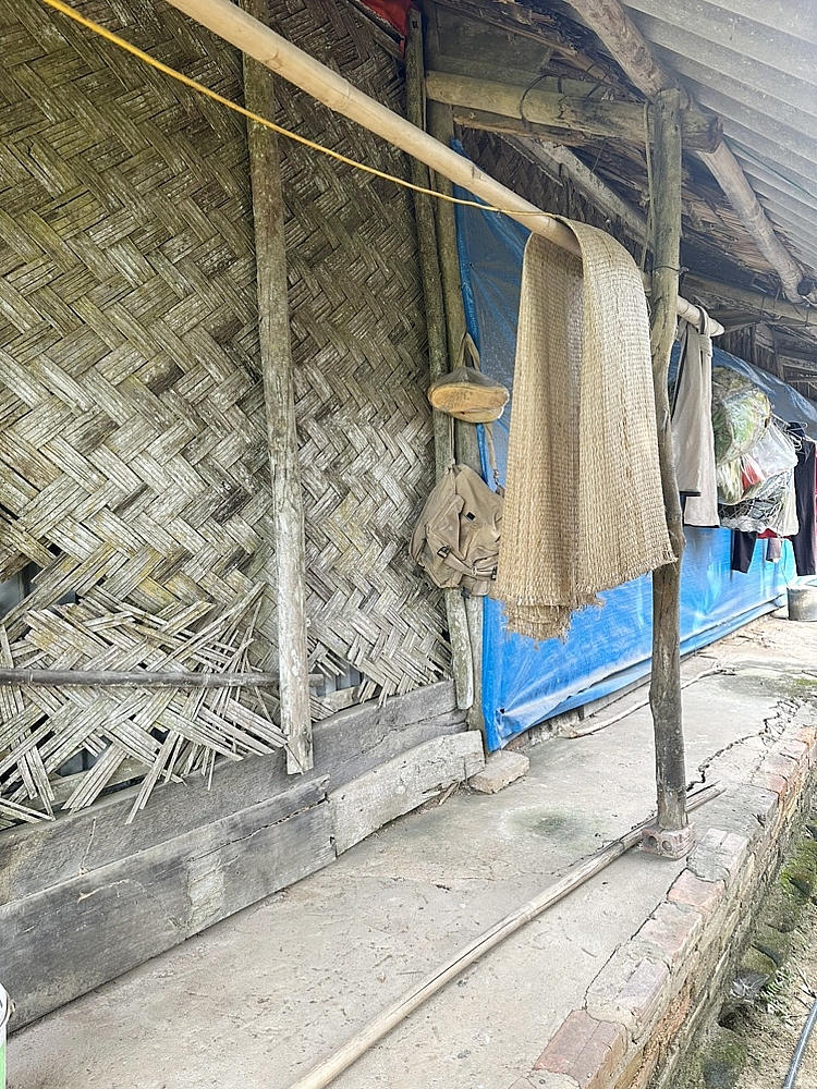 Hai đầu nhà trống trải nhìn rõ cả bầu trời, những tấm phên nứa tre xung quanh hầu hết đã mục nát được bổ sung vào đó những miếng bạt tận dụng và những tờ bìa cũ kiếm được từ các cửa hàng tạp hóa. Cả gia tài của cụ không có một vật dụng gì đáng giá vài chục nghìn đồng. Là vợ liệt sỹ, cụ được Nhà nước trợ cấp 2.055.000 đồng/tháng, vì khoản tiền này mà cụ không được xếp vào diện hộ nghèo, tiêu chí ở nông thôn hiện nay là vậy.