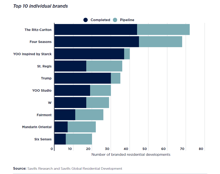 YOO Inspired by Starck và YOO Studio lọt top 10 bất động sản hàng hiệu mang thương hiệu cá nhân. Nguồn: Savills