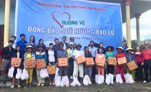 HOANHAP.VN - Ngày 17/10, Hội Doanh nhân Thanh Hóa tại Hà Nội phối hợp cùng Hội Chữ thập đỏ tỉnh Thanh Hóa đã trao 1.200 suất quà (trị giá 500.000 đồng/suất) gồm các nhu yếu phẩm cần thiết như gạo, mì tôm, dầu ăn… cho các gia đình bị thiệt hại nặng nề do mưa lũ và tặng áo đồng phục cho học sinh tại 3 huyện Yên Định, Thọ Xuân, Vĩnh Lộc (tỉnh Thanh Hóa).