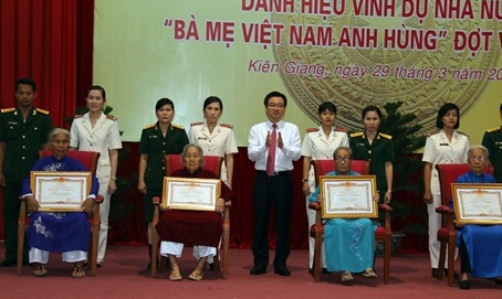 Hiện nay, tỉnh Kiên Giang có 55 tập thể và cá nhân vinh dự được Nhà nước phong tặng, truy tặng danh hiệu Anh hùng Lực lượng vũ trang nhân dân; 1.318 mẹ được phong tặng, truy tặng danh hiệu "Bà mẹ Việt Nam Anh hùng”.