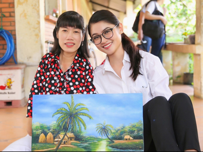Đến với "Hoa hậu Quốc tế - Miss International 2017", Á hậu Thùy Dung mang bức tranh sơn dầu do những học viên tại Trung tâm Dạy nghề cho người khuyết tật và trẻ mồ côi TP.HCM thực hiện để làm món quà tặng đấu giá từ thiện.