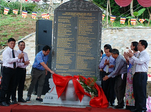 Văn bia tưởng niệm được làm bằng đá granit, trên đó ghi tên các anh hùng liệt sỹ và đồng bào tử nạn tại chiến trường Bà Rá - Phước Long trong những năm đánh Mỹ. Văn bia được đặt trong khuôn viên Đền thờ Bác Hồ và các liệt sỹ.