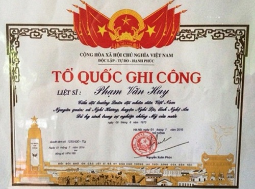 Tại Quyết định 1052/QĐ-TTg và Quyết định 1079/QĐ-TTg, Thủ tướng Chính phủ quyết định cấp đổi, cấp lại Bằng "Tổ quốc ghi công" cho 3.070 liệt sĩ thuộc các tỉnh, thành phố: Hải Phòng, Bạc Liêu, Hòa Bình, Quảng Bình, Thái Nguyên, Hải Dương, Bình Định, Hà Nội, Bình Dương, Hà Tĩnh, Bắc Giang, Sóc Trăng, Tây Ninh, Quảng Ngãi, Lâm Đồng, Bắc Ninh, An Giang, Nghệ An, Bình Thuận.
