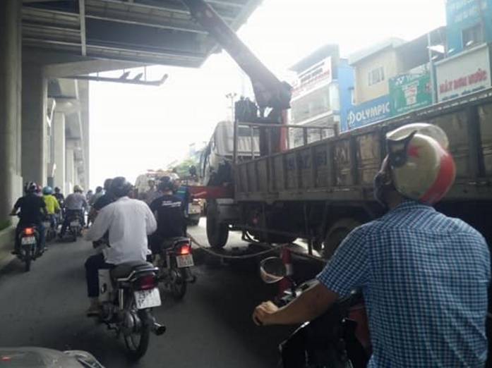 Khoảng 7 giờ 45 phút ngày 11/6, trên đường Cầu Giấy đoạn giao với đường Dịch Vọng, khi người dân đang lưu thông trên đường bất ngờ có một thanh sắt rơi từ trên công trường của công trình đường sắt trên cao xuống lòng đường.