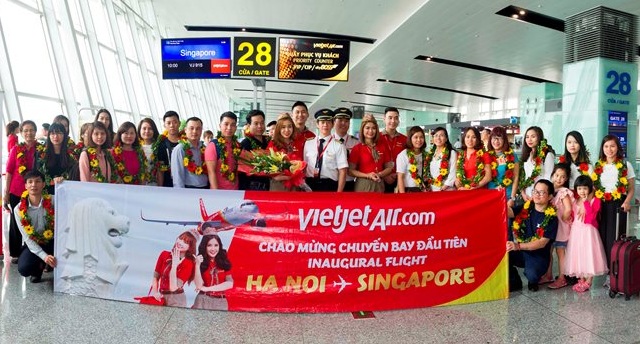 Hãng hàng không Vietjet vừa khai trương đường bay Hà Nội-Singapore và chào đón những hành khách đầu tiên.