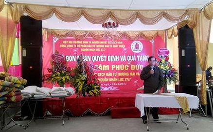 HOANHAP.VN - Sáng ngày 23/12, tại Thái Bình, Tổng Công ty Cổ phần Đầu tư Thương mại và Phát triển Nguồn nhân lực 27/7 (thành viên Hiệp hội doanh nghiệp của Thương binh và Người khuyết tật Việt Nam) đã tổ chức Lễ trao Quyết định công nhận thành viên và tặng quà cho Trung tâm Tâm Phúc Đức.