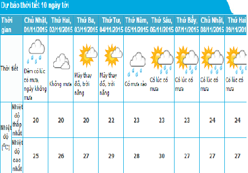 Khối áp cao bao trùm khu vực Bắc bộ, trên toàn miền, trời giảm mây, có nắng nhẹ, nhiệt độ phổ biến từ 29 - 32 độ C. Nam bộ đang bước vào đỉnh của đợt triều cường, gây ngập lụt cho nhiều tuyến phố tại các đô thị lớn.