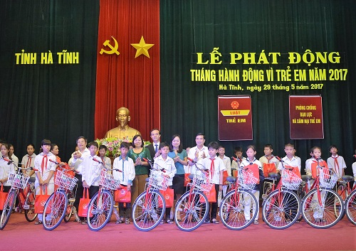 Sáng 29/5, Sở LĐ-TB&XH phối hợp với UBND thành phố Hà Tĩnh tổ chức lễ phát động Tháng hành động vì trẻ em năm 2017 với chủ đề: "Triển khai Luật Trẻ em và phòng, chống bạo lực, xâm hại trẻ em".