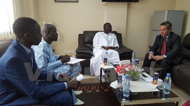 Trong thời gian công tác tại Senegal từ ngày 10-13/1, Đại sứ Việt Nam tại Algeria kiêm nhiệm Senegal Phạm Quốc Trụ đã có các cuộc gặp và làm việc với ông Aya Abdoul Kane, Bộ trưởng Bộ Bưu chính-Viễn thông, bà Khoudia Mbaye, Bộ trưởng Bộ Xúc tiến Đầu tư và Đối tác, ông Moustapha Lo Diatta, Quốc Vụ khanh Bộ Nông nghiệp và Trang thiết bị Nông thôn, ông Makhtar Lakh, Thứ trưởng thường trực Bộ Thương mại, ông Daouda Thiam Chủ tịch Phòng Thương mại, Công nghiệp, Nông nghiệp Dakar và ông Dominique Ndong, Phó Tổng Giám đốc Cơ quan xúc tiến đầu tư Senegal.