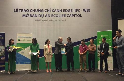 Ngày 8/10, tại Hà Nội, tổ chức tài chính IFC (thuộc Ngân hàng Thế giới) đã trao chứng chỉ xanh EDGE cho dự án EcoLife Capitol của chủ đầu tư Capital House.